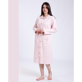 Robe de Chambre Matelassée Femme – Rose Poudré avec Broderie